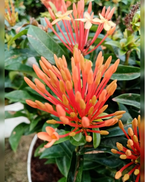 Ixora is a low-growing tropical plant and member in the Rubiaceae family and it’s also known as jungle flame and flame of the woods. Ixora shrubs are well known for their large glossy evergreen leaves that are oval-shaped and year-round corymbs of bright florets. The large flower clusters come in red make an Ixora plant well worth growing.  Flowers are most prolific in summer.