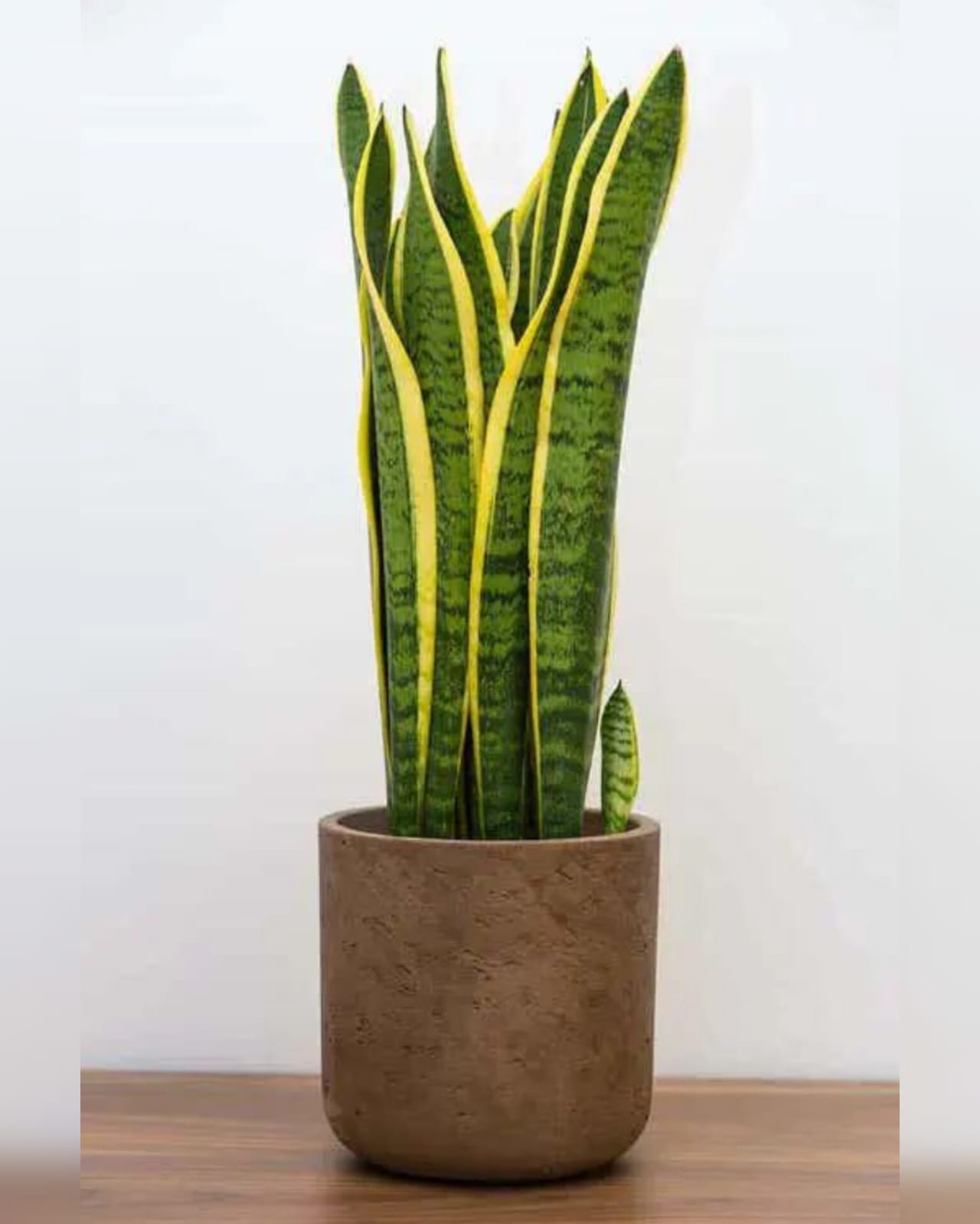 SANSEVIERIA IN STONE POT 45 CM TOTAL HEIGHT.